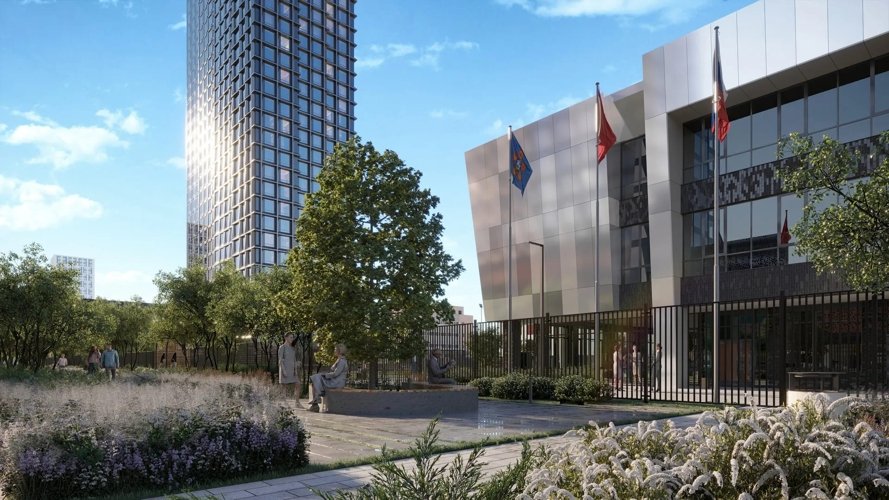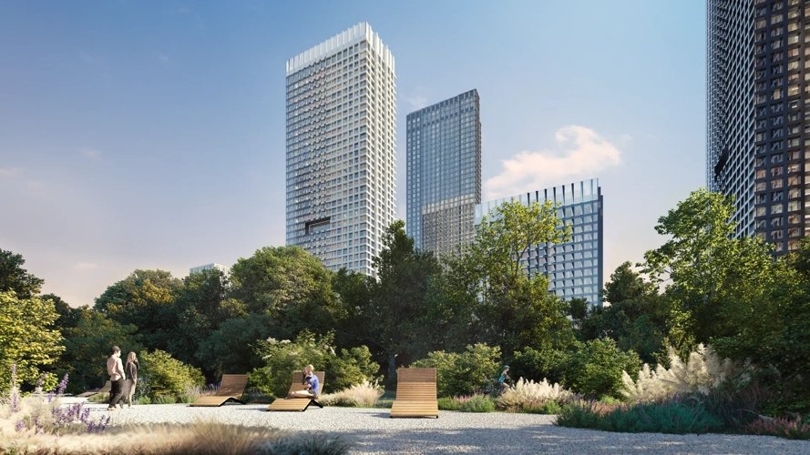 Футуристичные и монументальные башни Upside Towers станут новой урбанистической доминантой всего района.