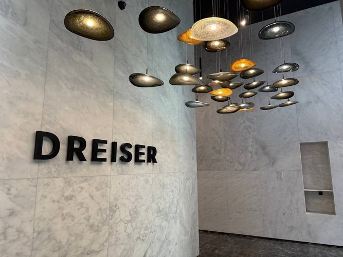 Продолжение внешней архитектуры в интерьерах лобби. Стойки ресепшен из натурального камня и продуманное зонирование от архитектурного бюро Kleinewelt Architekten.